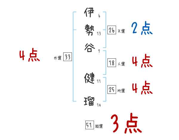 伊勢谷健瑠さんの画数の鑑定結果