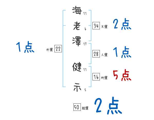 海老澤健示さんの画数の鑑定結果