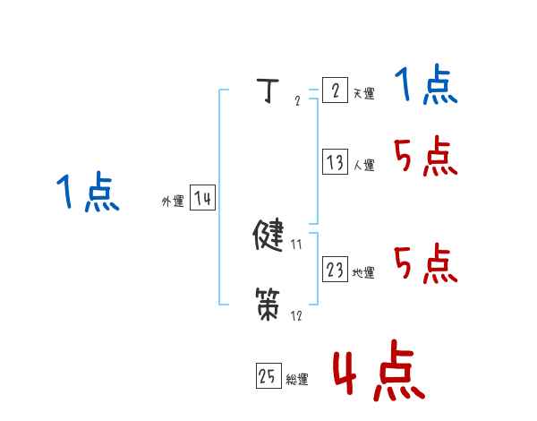 丁健策さんの画数の鑑定結果