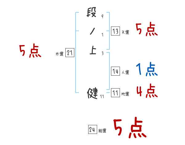 段ノ上健さんの画数の鑑定結果