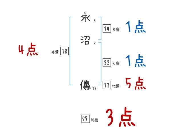 永沼傳さんの画数の鑑定結果