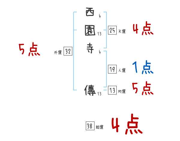 西園寺傳さんの画数の鑑定結果