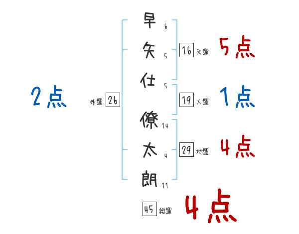 天運![]() | 早矢仕僚太朗さんの天運は16画の5つ星!人望が厚く大きく発展する。逆転成功が見える。 家系が持つ宿命的な運勢を表します。祖先から受け継いだ苗字ですので自分の力が及びません。家柄を象徴します。 |