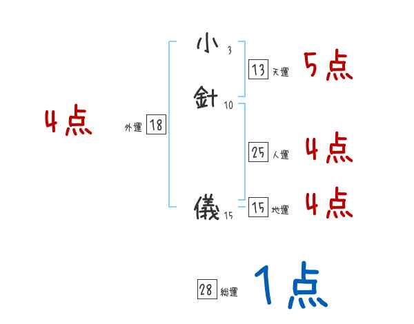 小針儀さんの画数の鑑定結果