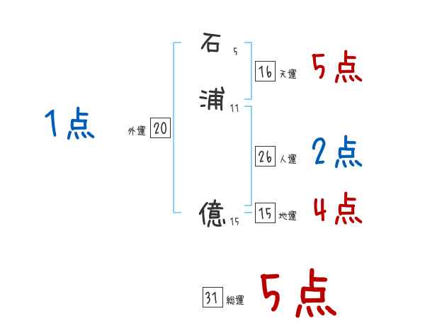 石浦億さんの画数の鑑定結果