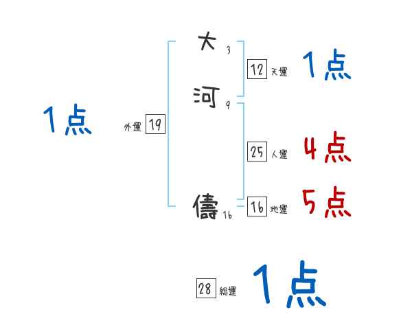 総運![]() | 大河儔さんの総運は28画の1つ星!家庭環境に注意。スポーツで活躍できる能力があるかも。 あなたの人生を表す1番重要な運勢です。生涯を通じて影響する総合運となり、主に50歳以降の晩年期に影響を及ぼします。 |