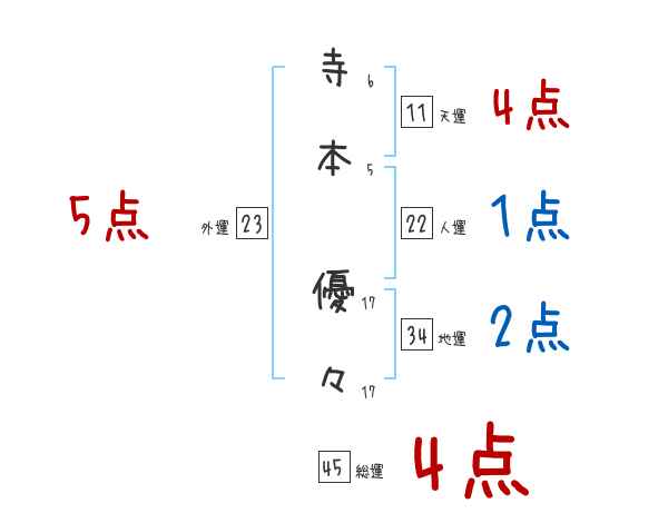 寺本優々さんの画数の鑑定結果