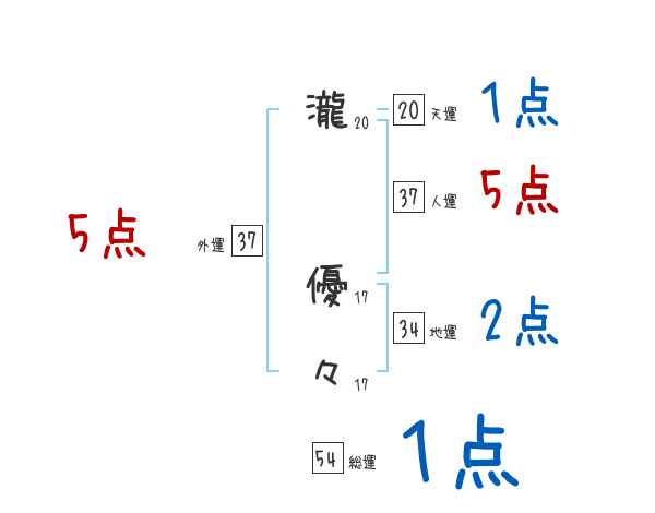 瀧優々さんの画数の鑑定結果