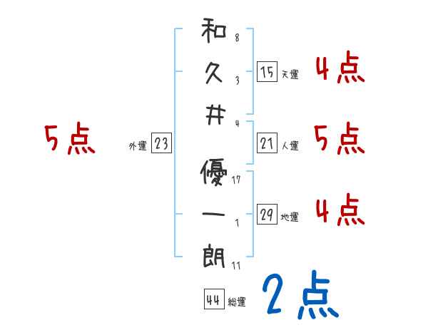 和久井優一朗さんの画数の鑑定結果
