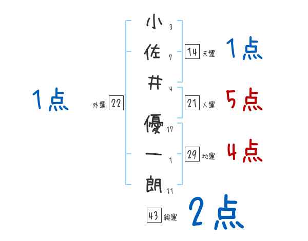 小佐井優一朗さんの画数の鑑定結果