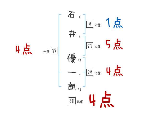 石井優一朗さんの画数の鑑定結果