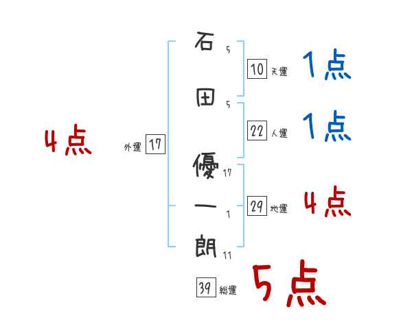 石田優一朗さんの画数の鑑定結果