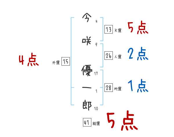 今咲優一郎さんの画数の鑑定結果