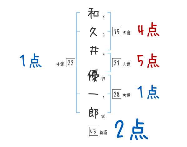 和久井優一郎さんの画数の鑑定結果