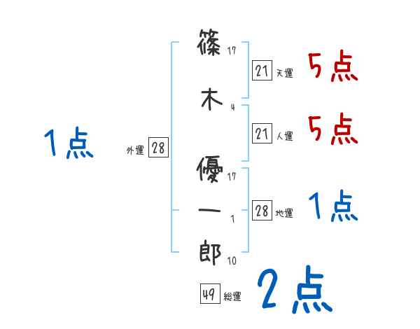 篠木優一郎さんの画数の鑑定結果