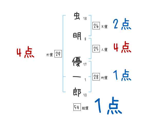 虫明優一郎さんの画数の鑑定結果
