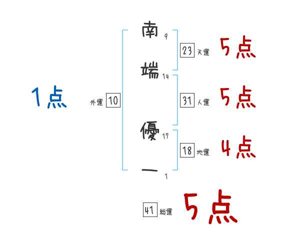 南端優一さんの画数の鑑定結果