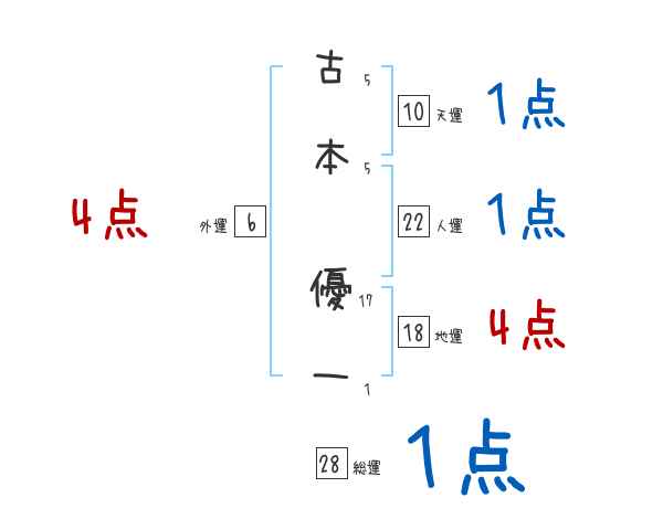 古本優一さんの画数の鑑定結果