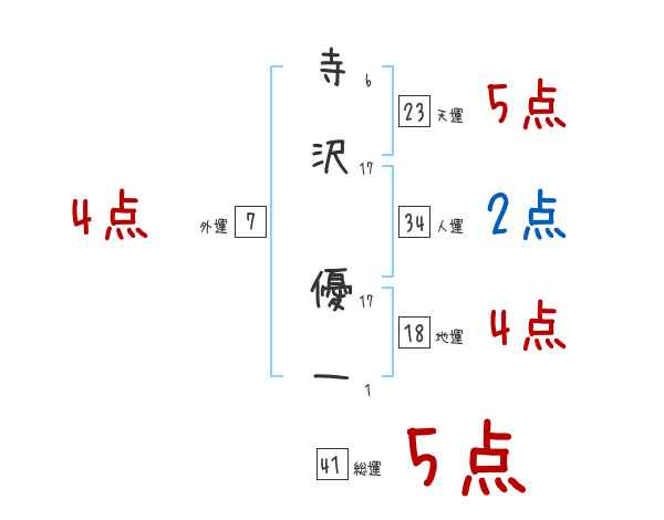 寺沢優一さんの画数の鑑定結果