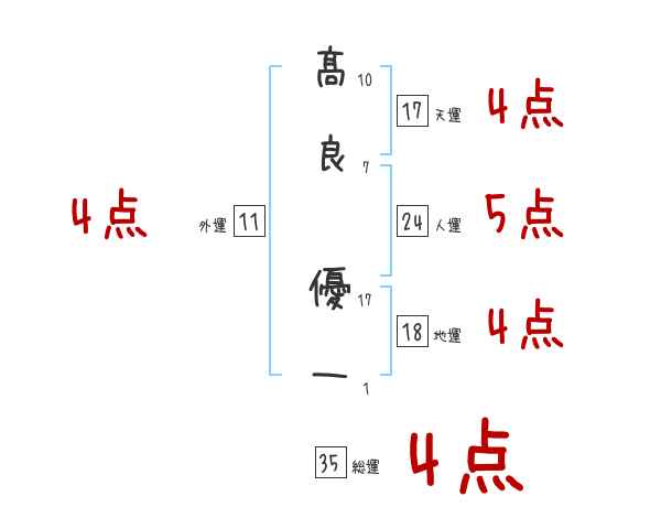 髙良優一さんの画数の鑑定結果