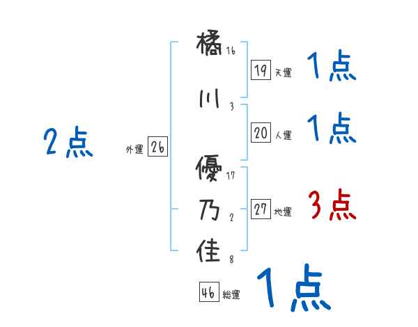 橘川優乃佳さんの画数の鑑定結果