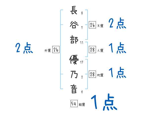 長谷部優乃音さんの画数の鑑定結果