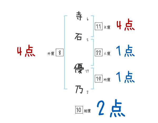 外運![]() | 寺石優乃さんの外運は8画の4つ星!勤勉家。根気強く努力し成功する。忍耐力がある。 生活面を象徴する運勢です。外部から受ける影響力を表し、結婚運、家庭運や職場、環境への順応性を表します。 |