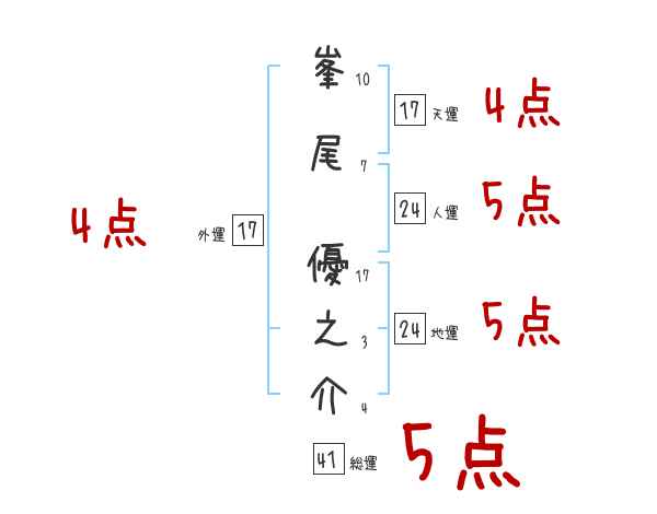 峯尾優之介さんの画数の鑑定結果