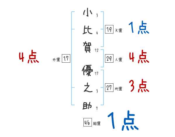 小比賀優之助さんの画数の鑑定結果