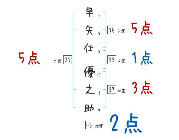 早矢仕優之助さんの画数の鑑定結果