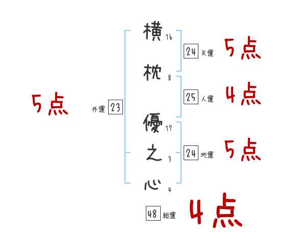 横枕優之心さんの画数の鑑定結果