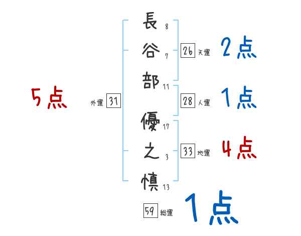 長谷部優之慎さんの画数の鑑定結果