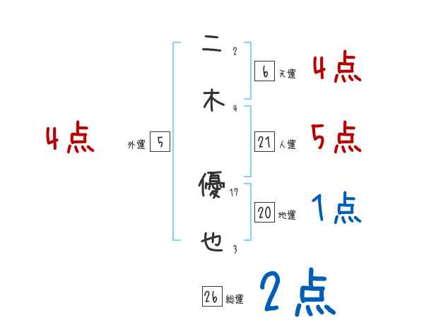 二木優也さんの画数の鑑定結果