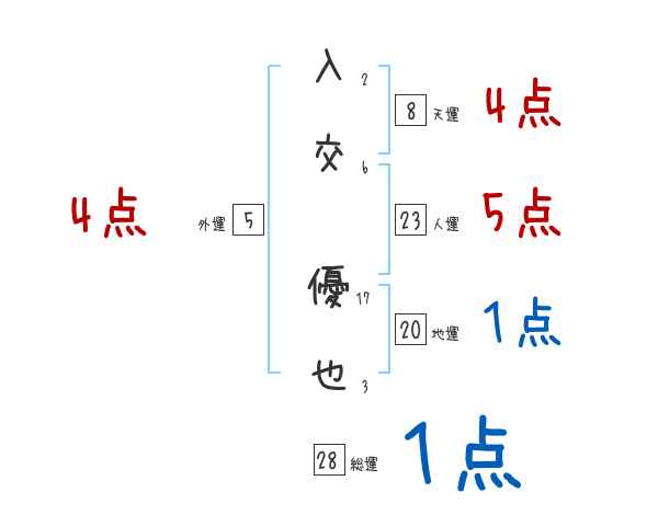 入交優也さんの画数の鑑定結果