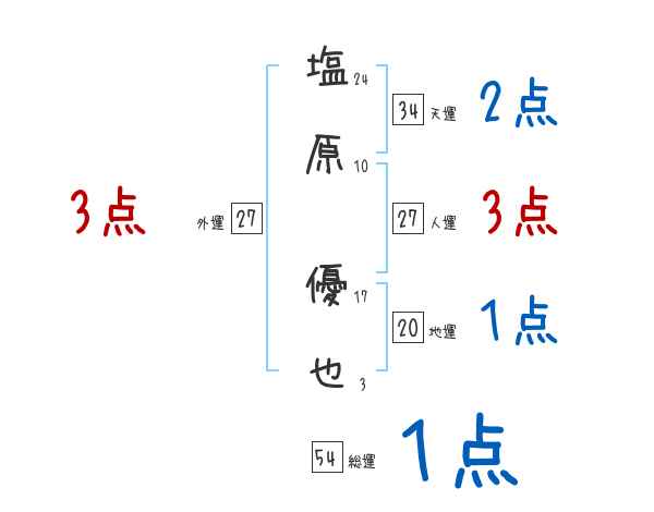 塩原優也さんの画数の鑑定結果