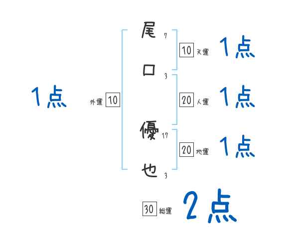 尾口優也さんの画数の鑑定結果