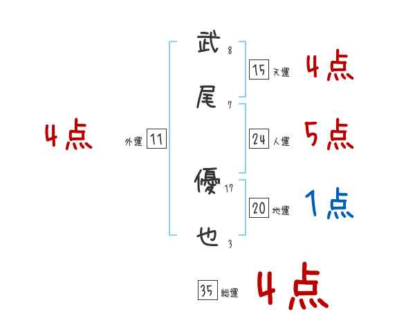 武尾優也さんの画数の鑑定結果