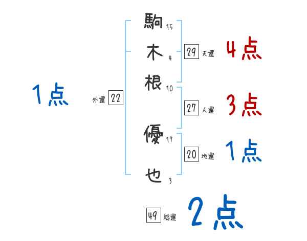駒木根優也さんの画数の鑑定結果