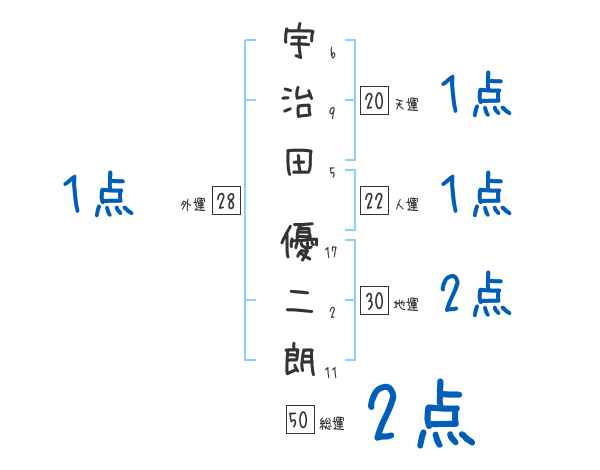 宇治田優二朗さんの画数の鑑定結果