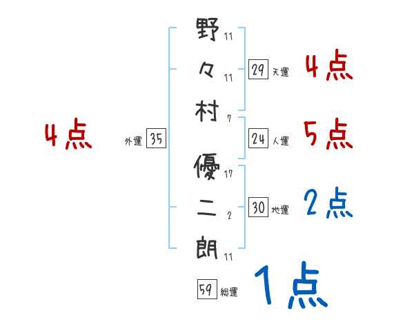 野々村優二朗さんの画数の鑑定結果