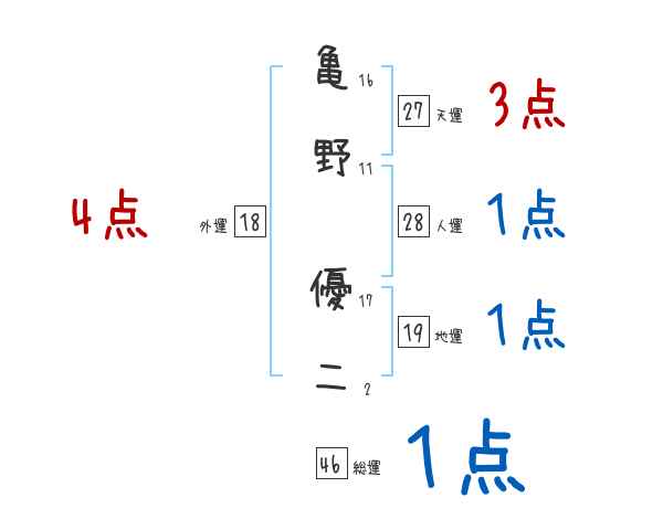 亀野優二さんの画数の鑑定結果