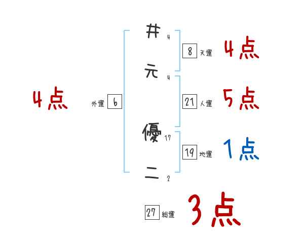 井元優二さんの画数の鑑定結果