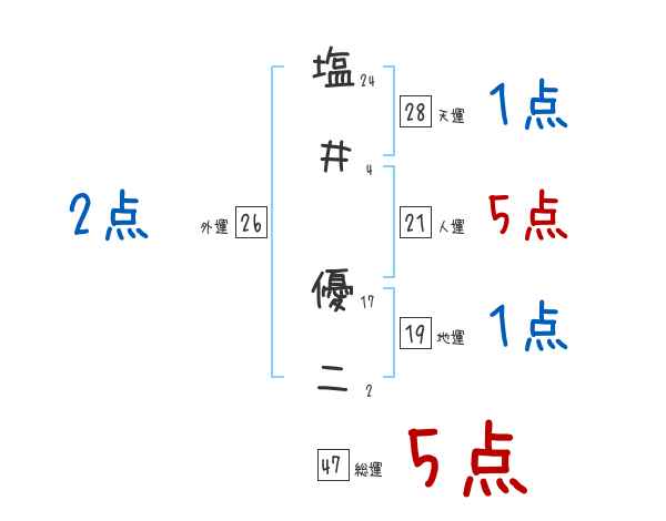 塩井優二さんの画数の鑑定結果