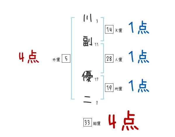 川副優二さんの画数の鑑定結果