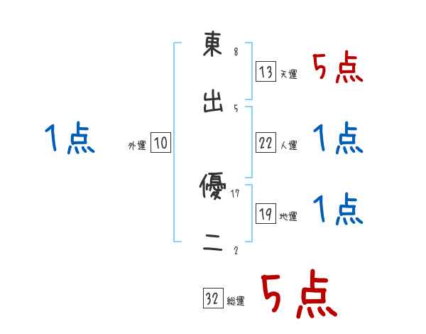 東出優二さんの画数の鑑定結果