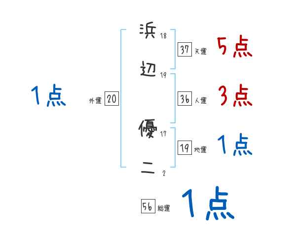 浜辺優二さんの画数の鑑定結果
