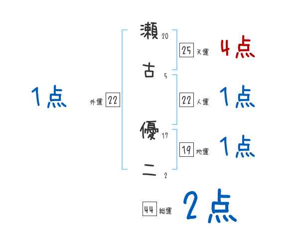 瀬古優二さんの画数の鑑定結果