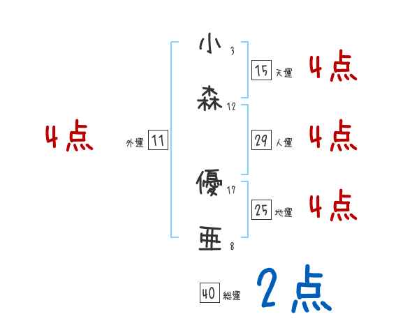 小森優亜さんの画数の鑑定結果