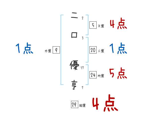 二口優亨さんの画数の鑑定結果