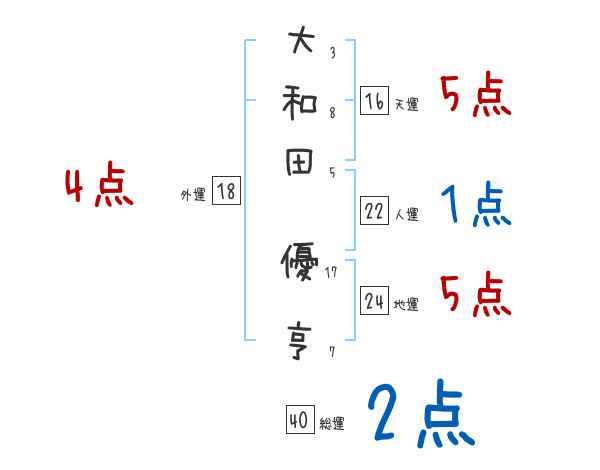 大和田優亨さんの画数の鑑定結果